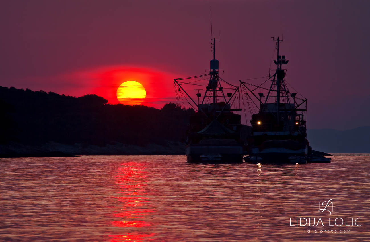 …and just when I thought that was it, the sun peeped through the clouds for a few moments. Enough time to make this wonderful photo of the fishing boats in the distance.